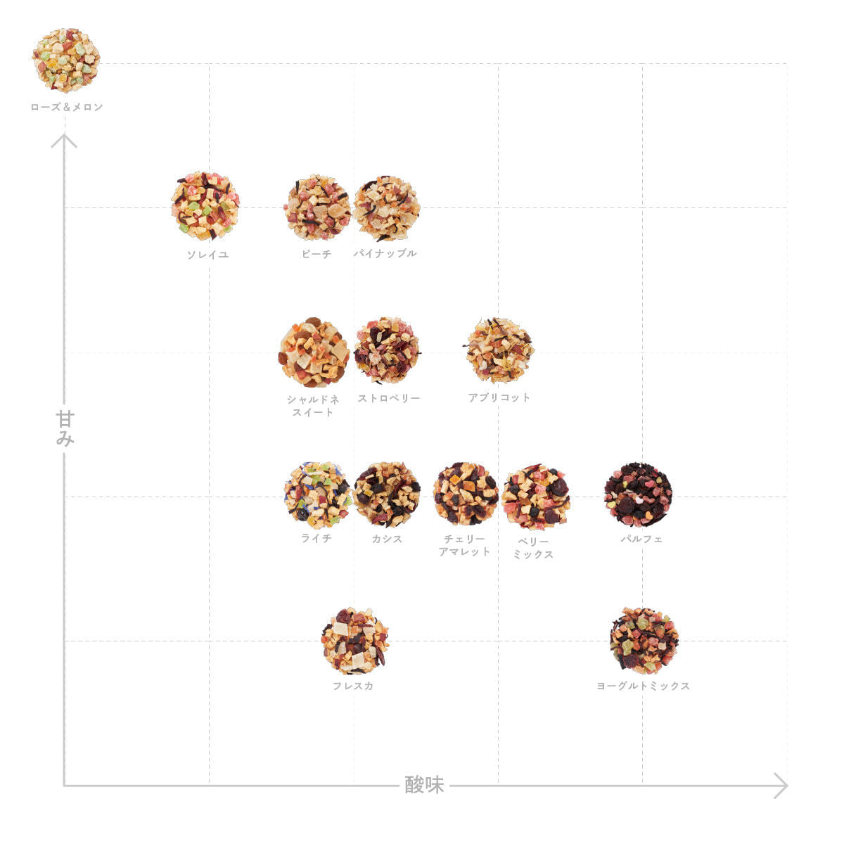 有機ドライアップル(オーストリア製造)、加糖ドライパパイヤ、加糖ドライマンゴー、加糖ドライクランベリー、加糖ドライブルーベリー、有機ハイビスカス、/香料、クエン酸、保存料(亜硫酸塩)